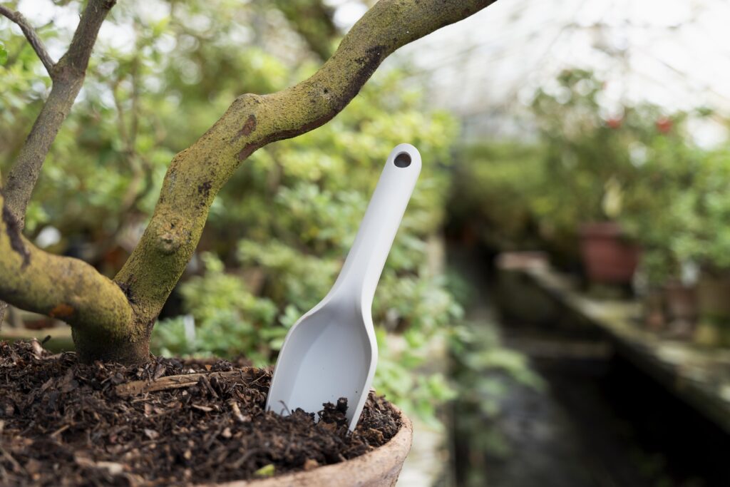 Mezclar el frass con una parte igual de tierra y regar después de aplicarlo para evitar que se disperse con el aire.